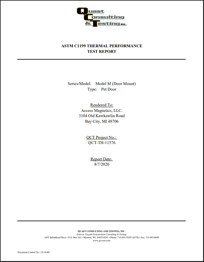 Our doors are evaluated using the same tests that are used for Energy Star certification for windows and human doors, and the results show that RANGER dog doors are 15X better at blocking outside air than requirements for human doors.